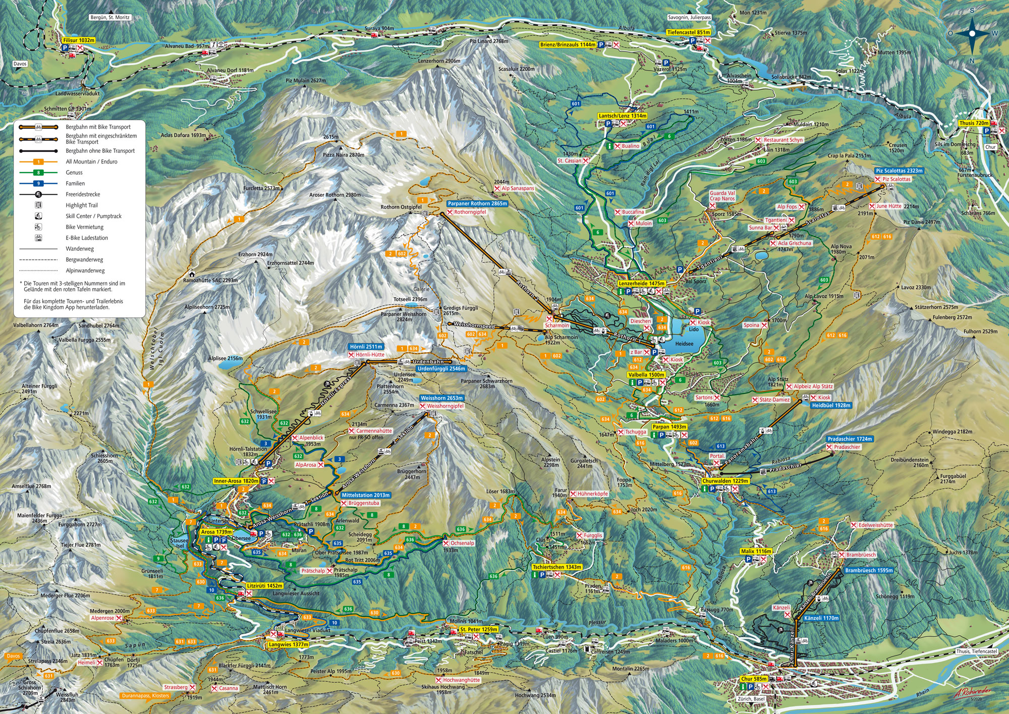 - Bike Kingdom Lenzerheide mit Bikepark und Cross-Country Strecken, verschiedenste Mountainbike-Touren rund um Muldain